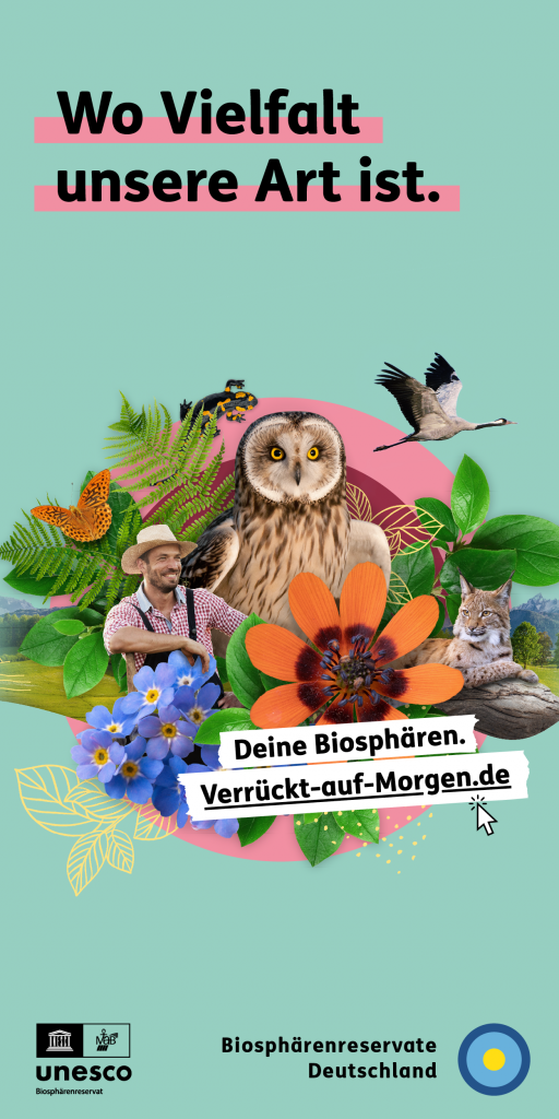 „Verrückt auf Morgen“ ist eine Kampagne der Biosphärenreservate Deutschlands, die Ende April 2022 deutschlandweit startet. Die Kampagne möchte die Bedeutung der Biosphärenreservate bekannt machen für ihre Arbeit in Deutschland begeistern.